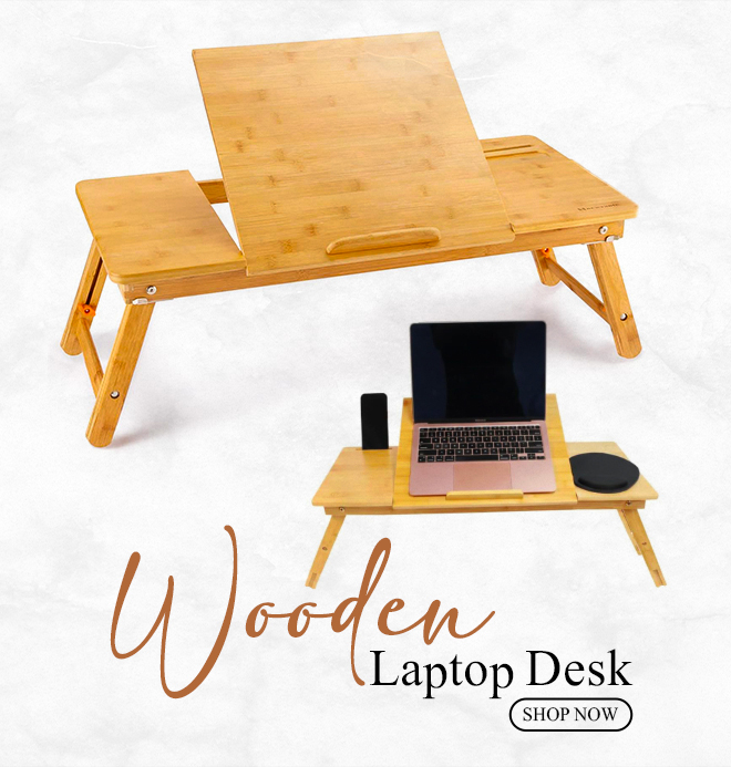 Premium Wooden Laptop Tray Table – Adjustable Foldable Desk